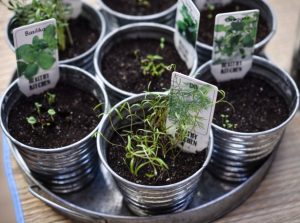Hierbas vegetales en recipientes de invierno